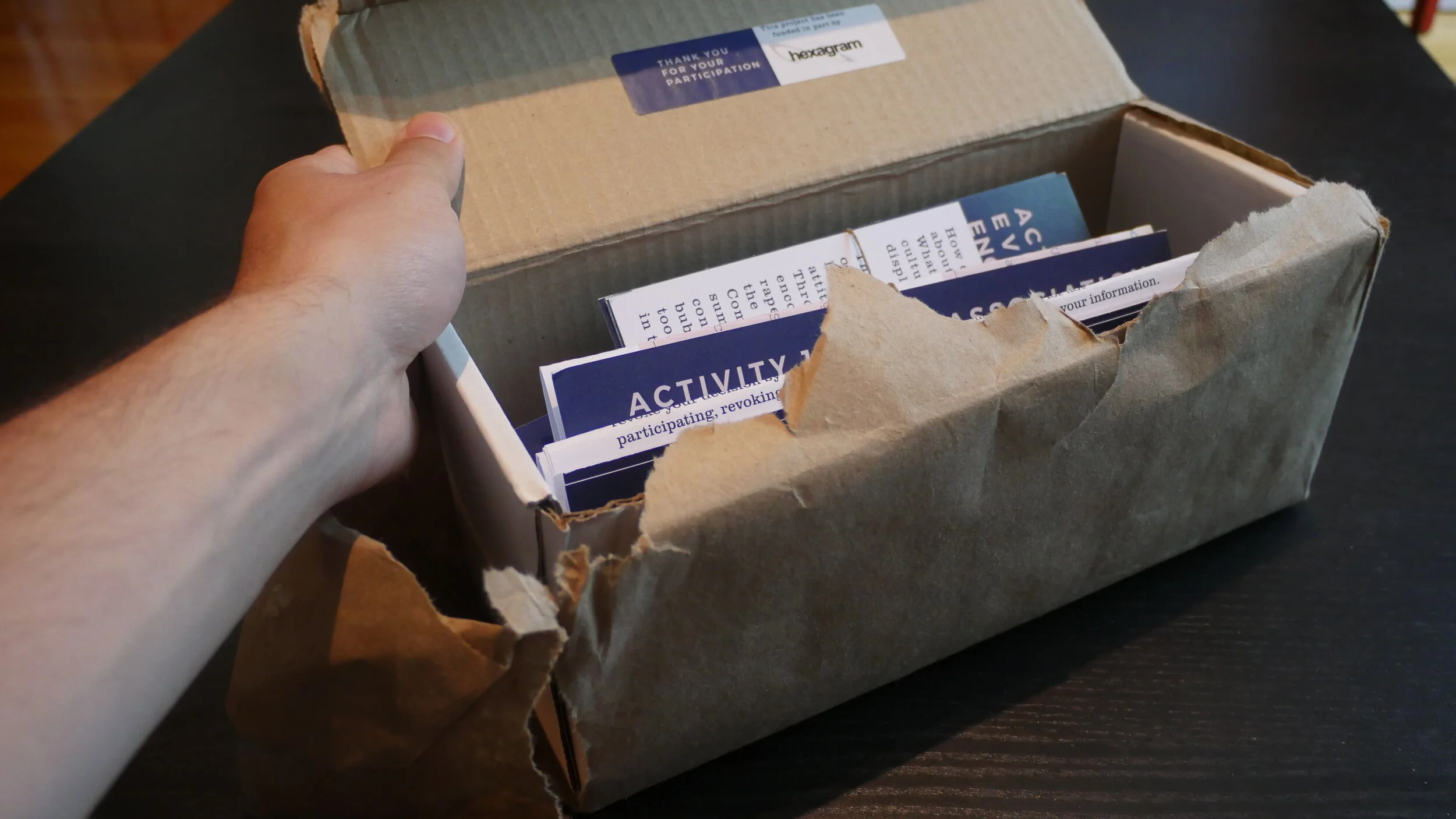 Cultural probe kits are a design research method developed to gain deeper insight into people’s daily lives, thoughts and interactions¹. They are typically kits made up of a series of activities that participants are asked to complete over a period of time.